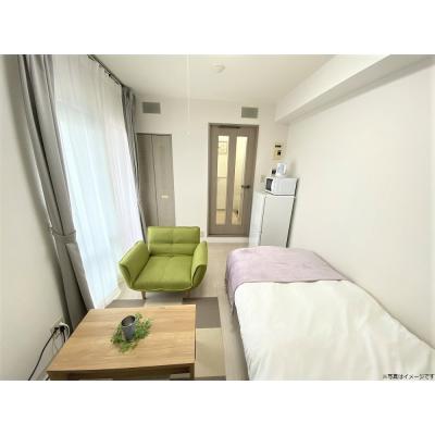 エアコン、テレビ(32型)、洗濯機、掃除機、電気ポット、電子レンジ、冷蔵庫 、シーツ類、ソファー(一人掛け)、テレビ台、ベッド、ベッドサイドテーブル、ラグマット、ローテーブル、寝具一式 、IHクッキングヒーター 、トイレットペーパー、シャワー、トイレ用ブラシ 、ゴミ箱、スリッパ、ハンガー 、カーテン、トイレ、下水道、給湯設備、上水道、浴室 、エレベーター、オートロック、プリペイド給湯システム 、3点ユニットバス、クローゼット、フローリング、ベランダ、収納、洗濯機置場(室内)、冷暖房完備