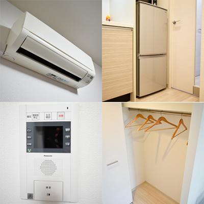 エアコン、テレビ、ドライヤー、炊飯ジャー、洗濯機、掃除機、電気ポット、電子レンジ、冷蔵庫 、イス、カーテン付き、シーツ類、ソファー、テーブル、テレビ台、デスク、ベッド、寝具一式 、まな板、ガスキッチン、ガスコンロ、キッチン洗剤、システムキッチン、スポンジ、フライパン、食器類、片手鍋、包丁 、トイレットペーパー、シャワー、トイレ洗剤、トイレ用ブラシ、バスマット、バス洗剤、洗面所独立、脱衣所、風呂用スポンジ、浴室乾燥機 、ゴミ箱、スリッパ、ハンガー、室内物干し、洗濯干し、物干し竿 、ガス、トイレ、下水道、給湯設備、上水道、分譲タイプ、浴室 、エレベーター、オートロック、宅配BOX 、インターネット対応(無料)、クローゼット、バス・トイレ別、フローリング、洗浄機能付き便座、洗濯機置場(室内)、冷暖房完備