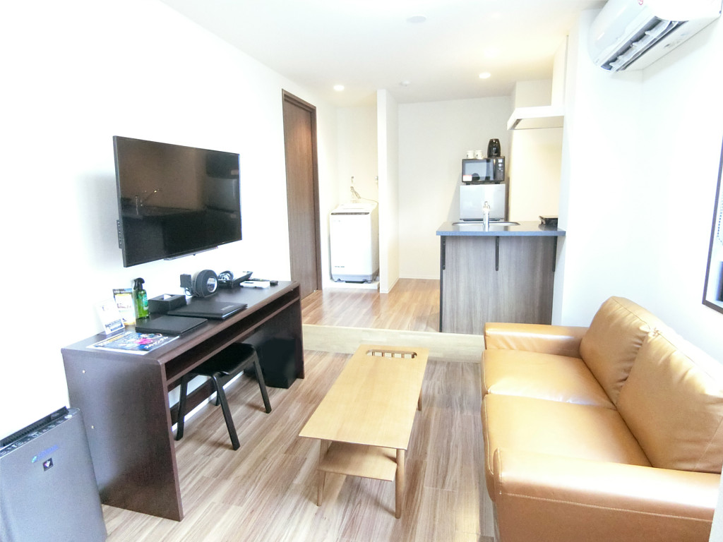 ・家具はデスク、ソファ、ダイニングテーブルセットなど居室に合わせて配置。