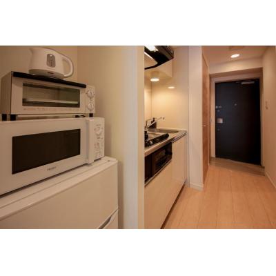 WIFIルーター、アイロン、アイロン台、エアコン、テレビ、トースター、ドライヤー、炊飯ジャー、洗濯機、掃除機、電気ポット、電子レンジ、冷蔵庫 、イス、カーテン付き、シーツ類、テーブル、テレビ台、デスク、ベッド、寝具一式 、お玉、まな板、ガスキッチン、ガスコンロ、キッチン洗剤、スポンジ、フライパン、フライ返し、計量カップ、食器類、片手鍋、包丁 、トイレットペーパー、ウォッシュボウル、シャワー、シャンプー、タオル、トイレ用ゴミ箱、トイレ用ブラシ、バスマット、バス洗剤、ピンチハンガー、リンス、浴室乾燥機 、クリップ付ハンガー、ゴミ箱、シャンプー・コンディショナー、スーツ用ハンガー、スリッパ、ティッシュ、ハンガー、案内ファイル、鏡、靴べら、雑巾、物干し竿 、ガス、トイレ、下水道、給湯設備、上水道、浴室 、24時間ゴミ出し可能、エレベーター、オートロック、宅配BOX 、インターネット対応(無料)、クローゼット、バス・トイレ別、フローリング、洗浄機能付き便座、洗濯機置場(室内)、暖房完備、冷暖房完備