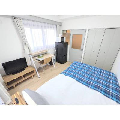 エアコン、テレビ(24型)、洗濯機、掃除機、電気ポット、電子レンジ、冷蔵庫 、イス、シーツ類、テレビ台、デスク、ベッド、寝具一式 、ガスコンロ 、トイレットペーパー、シャワー、トイレ用ブラシ 、ゴミ箱、スリッパ、ハンガー 、カーテン、トイレ、下水道、給湯設備、上水道、浴室 、3点ユニットバス、クローゼット、ベランダ、収納、洗濯機置場(室内)、冷暖房完備