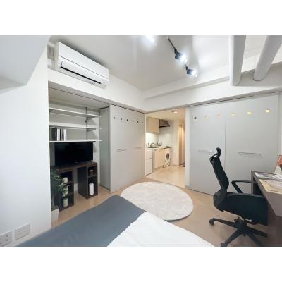 エアコン、テレビ、洗濯機、掃除機、電気ポット、電子レンジ、冷蔵庫 、イス、カーテン付き、デスク、ベッド 、IHクッキングヒーター、お玉、まな板、フライパン、フライ返し、食器類、片手鍋、包丁 、トイレットペーパー、シャンプー、タオル、ボディータオル、リンス 、スリッパ、ティッシュ、ハンガー 、トイレ、下水道、給湯設備、上水道、浴室 、エレベーター、オートロック、宅配BOX 、インターネット対応(無料)、クローゼット、フローリング、洗浄機能付き便座、冷暖房完備