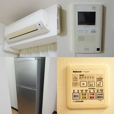 エアコン、テレビ、ドライヤー、炊飯ジャー、洗濯機、掃除機、電気ポット、電子レンジ、冷蔵庫 、イス、カーテン付き、シーツ類、テーブル、テレビ台、ベッド、寝具一式 、まな板、ガスキッチン、ガスコンロ、キッチン洗剤、システムキッチン、スポンジ、フライパン、食器類、片手鍋、包丁 、トイレットペーパー、シャワー、トイレ洗剤、トイレ用ブラシ、バスマット、バス洗剤、洗面所独立、脱衣所、風呂用スポンジ、浴室乾燥機 、ゴミ箱、スリッパ、ハンガー、室内物干し、洗濯干し、物干し竿 、ガス、トイレ、下水道、給湯設備、上水道、分譲タイプ、浴室 、エレベーター、オートロック、宅配BOX 、インターネット対応(無料)、クローゼット、バス・トイレ別、フローリング、角部屋、洗浄機能付き便座、洗濯機置場(室内)、冷暖房完備