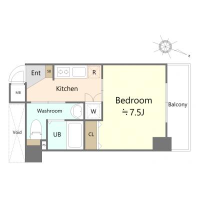 洋室は7.5畳、IHクッキングヒーターのお部屋です。