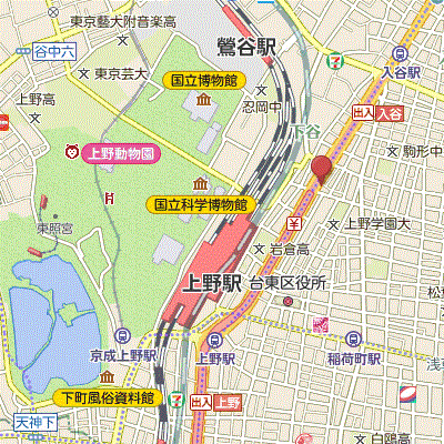 JR山手線上野駅 徒歩5分 東京メトロ日比谷線入谷(東京)駅 徒歩7分 東京メトロ銀座線稲荷町(東京)駅 徒歩8分 |