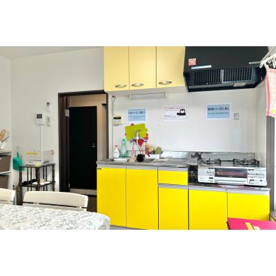 キッチンは2口・グリル付き、 炊飯器や電子レンジなどもあります。 これなら様々なお料理に挑戦できそう。