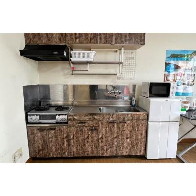 キッチンは使い勝手のいい大きさはもちろん、 調理器具や家電、食器が一通り用意されています。 気兼ねなくお料理を始められますよ。