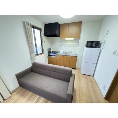 エアコン、テレビ、ドライヤー、炊飯ジャー、洗濯機、掃除機、電気ポット、電子レンジ、冷蔵庫 、イス、カーテン付き、テレビ台、寝具一式 、ガスコンロ 、トイレットペーパー、シャワー、タオル、トイレ用ゴミ箱、トイレ用ブラシ、バスマット、洗面所独立 、ゴミ箱、スリッパ、ティッシュ、ハンガー、鏡、洗濯干し、物干し竿 、ガス、トイレ、下水道、給湯設備、上水道、浴室 、インターネット対応(無料)、クローゼット、バス・トイレ別、角部屋、洗浄機能付き便座、洗濯機置場(室内)、冷暖房完備