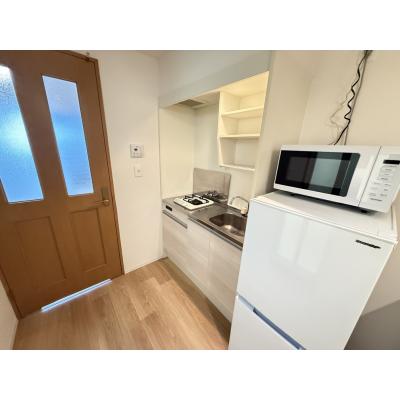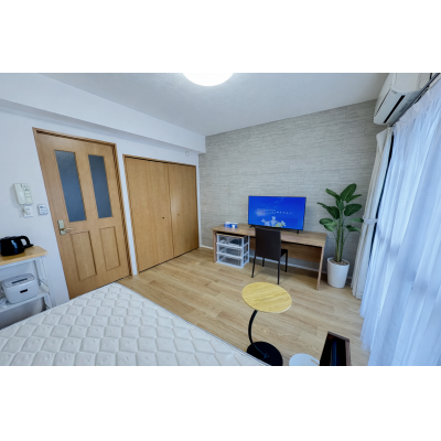 エアコン、テレビ、ドライヤー、炊飯ジャー、洗濯機、掃除機、電気ポット、電子レンジ、冷蔵庫 、イス、ベッド、寝具一式 、ガスキッチン 、トイレットペーパー、シャワー、タオル、トイレ用ゴミ箱、トイレ用ブラシ、バスマット、洗面器 、ゴミ箱、スリッパ、ティッシュ、ハンガー、鏡、洗濯干し、物干し竿 、ガス、トイレ、下水道、給湯設備、上水道、浴室 、オートロック 、インターネット対応(無料)、クローゼット、バス・トイレ別、フローリング、洗濯機置場(室内)、冷暖房完備