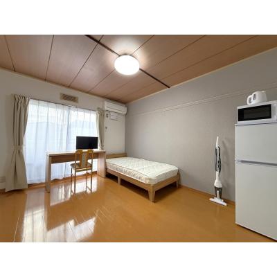 ・家具(シングルベッド・テーブル・イス・カーテン)※物件によって内容は多少異なります。