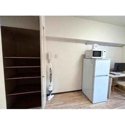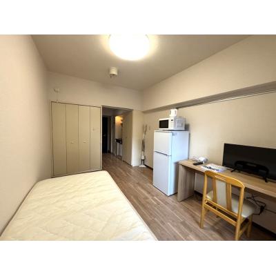 エアコン、テレビ、ドライヤー、洗濯機、掃除機、電気ポット、電子レンジ、冷蔵庫 、イス、カーテン付き、テーブル、ベッド、寝具一式 、IHクッキングヒーター 、シャワー 、ガス、トイレ、下水道、給湯設備、上水道、浴室 、エレベーター 、インターネット対応(無料)、クローゼット、フローリング、洗濯機置場(室外)