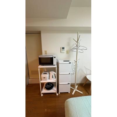 エアコン、ドライヤー、ミニ冷蔵庫、炊飯ジャー、洗濯機、掃除機、電気スタンド、電気ポット、電子レンジ 、イス、カーテン付き、シーツ類、テーブル、ベッド、食器棚、寝具一式 、IHクッキングヒーター、お玉、まな板、キッチン洗剤、スポンジ、フライパン、蓋付鍋、食器類、包丁 、トイレットペーパー、シャワー、シャンプー、タオル、トイレ用ブラシ、ハンドソープ、バスマット、バス洗剤、ボディータオル、リンス 、ゴミ箱、ハンガー、鏡、洗濯干し 、トイレ、給湯設備、上水道、浴室 、エレベーター 、インターネット対応(無料)、フローリング、洗濯機置場(室外)、暖房完備、冷暖房完備、冷房完備 |