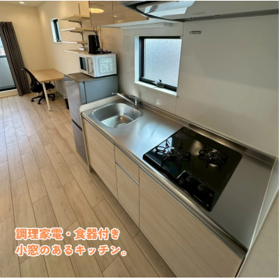 エアコン、テレビ、ドライヤー、炊飯ジャー、洗濯機、掃除機、電気ポット、電子レンジ、冷蔵庫 、イス、カーテン付き、シーツ類、テーブル、デスク、ベッド、寝具一式 、お玉、ガスキッチン、ガスコンロ、フライパン、フライ返し、蓋付鍋、食器類、鍋、片手鍋、包丁 、トイレットペーパー、シャワー、洗面所独立、脱衣所、浴室乾燥機 、ゴミ箱、ティッシュ、ハンガー 、ガス、トイレ、下水道、上水道、浴室 、オートロック、宅配BOX 、インターネット対応(無料)、クローゼット、バス・トイレ別、フローリング、洗浄機能付き便座、洗濯機置場(室内)、冷暖房完備