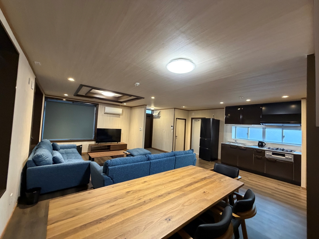 ・家具はデスク、ソファ、ダイニングテーブルセットなど居室に合わせて配置。
