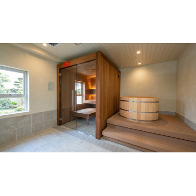大浴場は元の状態を活かしつつ、 一日の疲れをほどく空間に。 新設のサウナも、整う毎日に欠かせません。