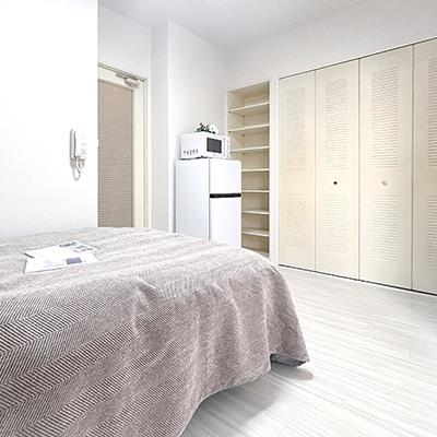 WIFIルーター、エアコン、テレビ、トースター、ドライヤー、炊飯ジャー、洗濯機、掃除機、電気ポット、電子レンジ、冷蔵庫 、イス、カーテン付き、シーツ類、テレビ台、デスク、ベッド、寝具一式 、IHクッキングヒーター、お玉、まな板、キッチン洗剤、スポンジ、スポンジ入れ、フライパン、フライ返し、計量カップ、食器類、布巾、片手鍋、包丁、包丁研ぎ 、トイレットペーパー、シャワー、シャンプー、タオル、トイレ洗剤、トイレ用ブラシ、バス洗剤、ピンチハンガー、リンス、石鹸 、洗面器 、クリップ付ハンガー、ゴミ箱、シャンプー・コンディショナー、スーツ用ハンガー、スリッパ、ティッシュ、ハンガー、案内ファイル、延長コード、靴べら、固形ソープ(石鹸)、洗剤、洗濯干し、卓上鏡、目覚まし時計 、ガス、トイレ、下水道、給湯設備、上水道、浴室 、エレベーター、オートロック 、インターネット対応(無料)、クローゼット、フローリング、高速WIFI対応(無制限)、洗濯機置場(室内)、暖房完備、冷暖房完備