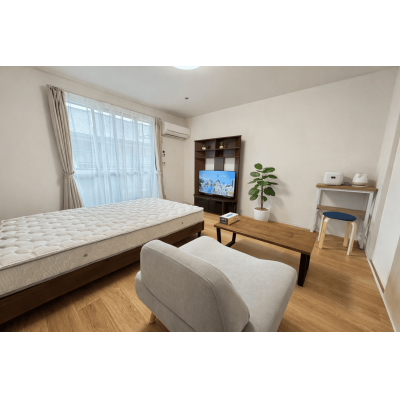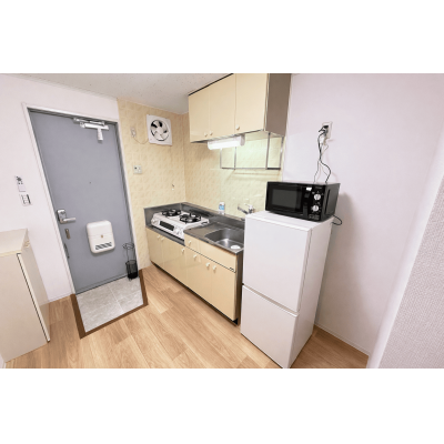 エアコン、テレビ、ドライヤー、炊飯ジャー、洗濯機、掃除機、電気ポット、電子レンジ、冷蔵庫 、イス、カーテン付き、寝具一式 、ガスコンロ 、トイレットペーパー、シャワー、タオル、トイレ用ゴミ箱、トイレ用ブラシ、バスマット、ボディータオル、洗面器 、ゴミ箱、スリッパ、ティッシュ、ハンガー、鏡、洗濯干し、物干し竿 、ガス、トイレ、下水道、給湯設備、上水道、浴室 、BSテレビ 、インターネット対応(無料)、バス・トイレ別、洗浄機能付き便座、洗濯機置場(室内)、冷暖房完備