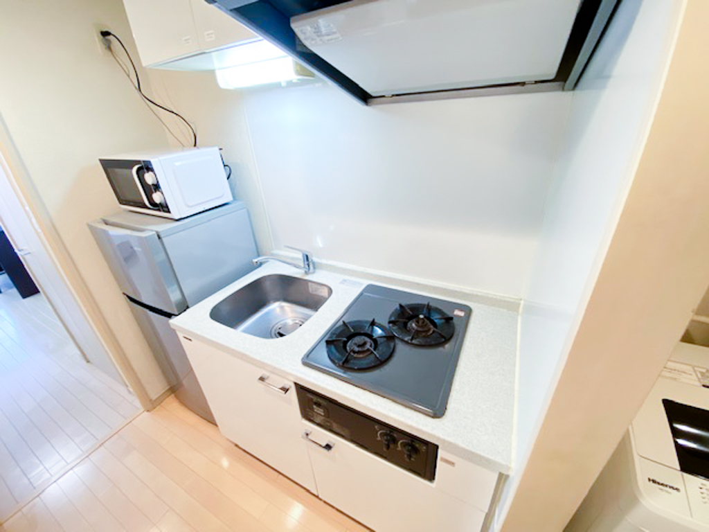 洗濯機、エアコン、テレビ、ドライヤー、冷蔵庫、電子レンジ、掃除機、電気ケトル 、テレビ台、カーテン付き、デスク、イス、ベッド 、システムキッチン、ガスキッチン、ガスコンロ 、浴室乾燥機、シャワー、トイレットペーパー、トイレ用ブラシ、トイレ用ゴミ箱 、ゴミ箱、ハンガー、ティッシュ 、エレベーター、ガス、上水道、下水道、給湯設備、浴室、トイレ 、オートロック、宅配BOX 、冷暖房完備、暖房完備、インターネット対応(無料)、クローゼット、バス・トイレ別、フローリング、洗濯機置場(室内)、洗浄機能付き便座